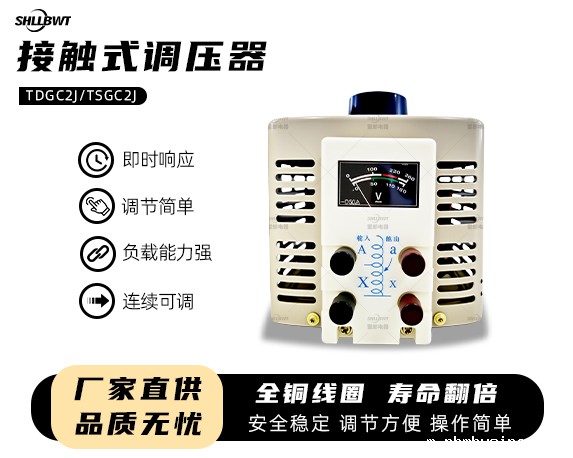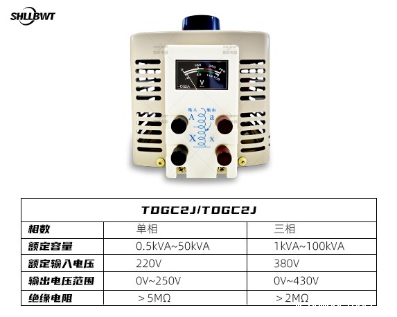 TDGC2J系列接触式调压器是一种手动调节单相/三相交流电压的装置,通过滑动碳刷与线圈的接触位置实现输出电压的连续可调。其设计紧凑、操作简便,适用于实验室、工业设备测试、灯光控制及小型电气系统的电压调节,是低功率场景中经济高效的调压解决方案。